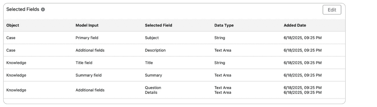 Choose the Case fields and Knowledge fields that Einstein should analyze.