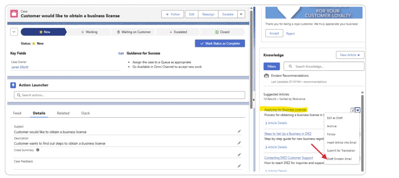 Einstein Article Recommendations: Delivering the Right Knowledge at the Right Time