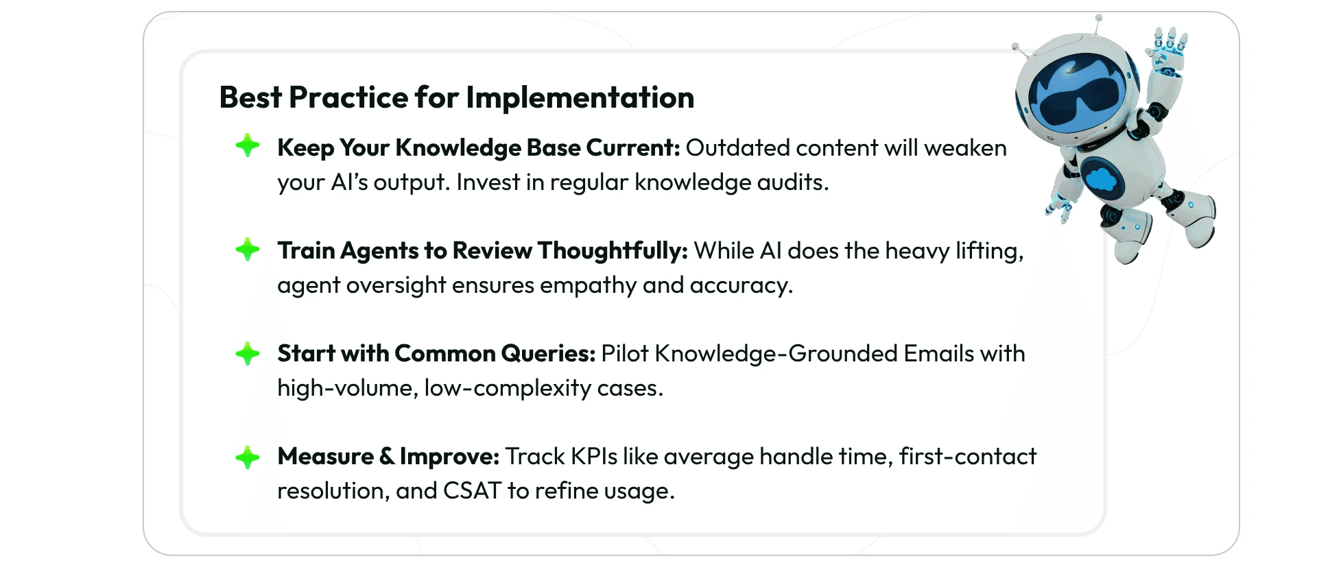 As AI becomes more embedded in service workflows, features like Knowledge-Grounded Emails will define how organizations meet rising customer expectations. The future of customer support is fast, smart, and most importantly — grounded in knowledge.